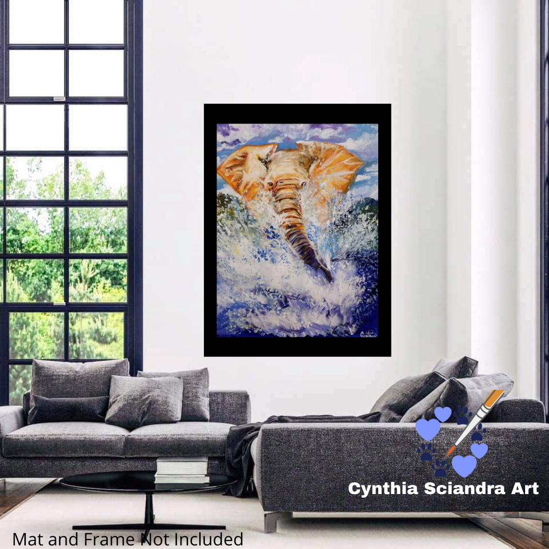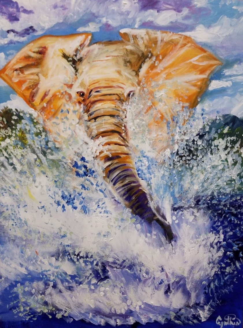 This original 30" x 40" acrylic painting on canvas captures the presence of a bull elephant—majestic, wise, and fiercely protective of his territory. Known for their strength and memory, elephants embody resilience, guardianship, and the deep wisdom of the natural world.